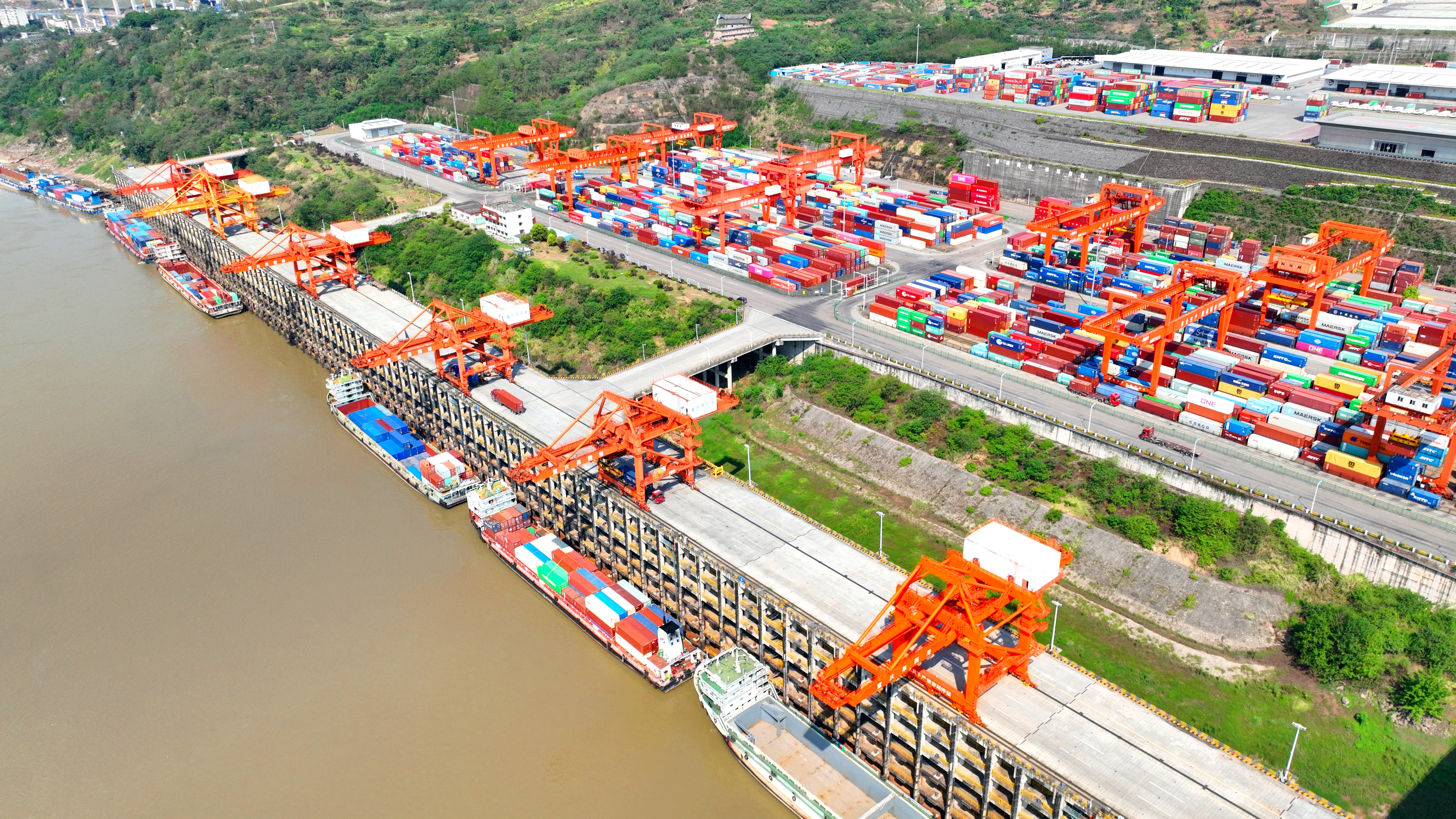 2025長(zhǎng)江上游首個(gè)“雙四星”港口的綠色智慧蝶變——重慶果園港集裝箱碼頭被...